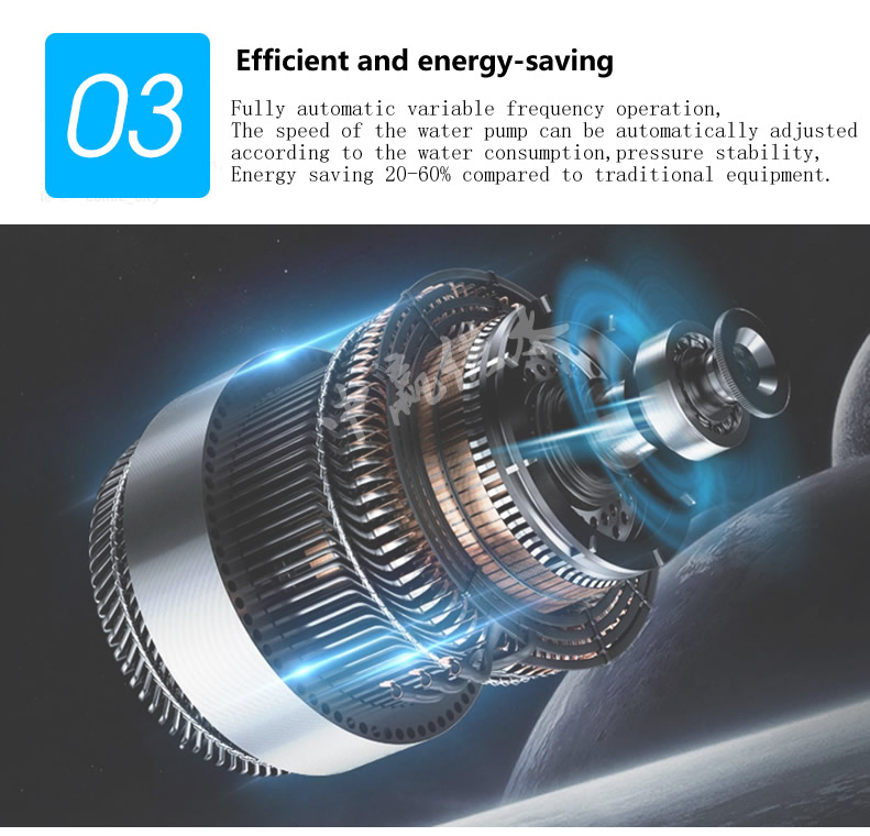 Variable frequency constant pressure water supply equipment by air pressure tank, pump and electric control system is composed of three parts, its outstanding advantage is, no need to build the tower, a small investment and land occupation, flexible layout, fast completion. In the frequency conversion constant pressure water supply equipment using automatic regulation of water and gas, automatic operation, energy saving and tap water automatically connected to the grid, the power supply is still available after the water, no need to monitor after debugging. Constant pressure water supply technology advanced, constant pressure, convenient operation, reliable operation, saving energy, high degree of automation, widely used in enterprise units, residential areas and rural production, living, office water supply. Suitable for water supply households in 5000 households, the daily water supply in 3000m3 places, the water supply height of more than 100 meters.